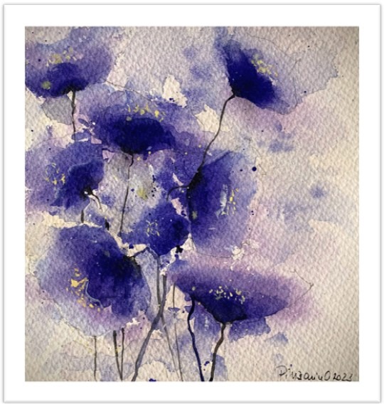 Watercolor Painting Description: „Blue Flower Field”