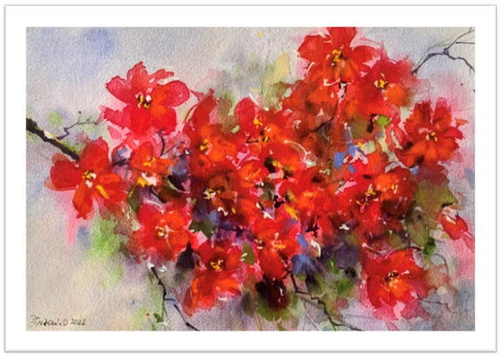 Crenguta inflorita este un tablou pictat manual in acuarela, care surprinde frumusetea unei flori in plina inflorire. Tabloul este realizat cu atentie la detalii, folosind culori vibrante si pigmentate, care asigura o rezistenta indelungata.