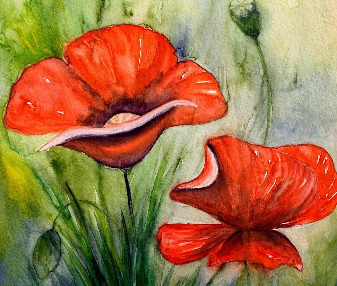 Maci – tablou pictat manual in acuarela „Red Poppies”