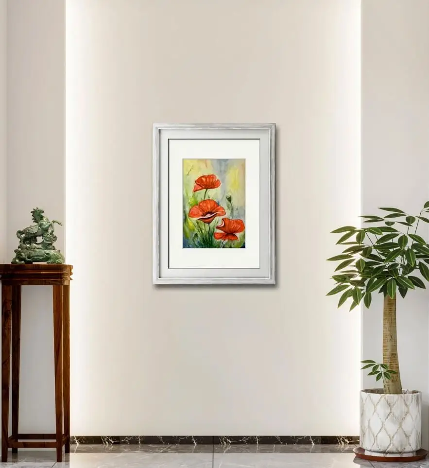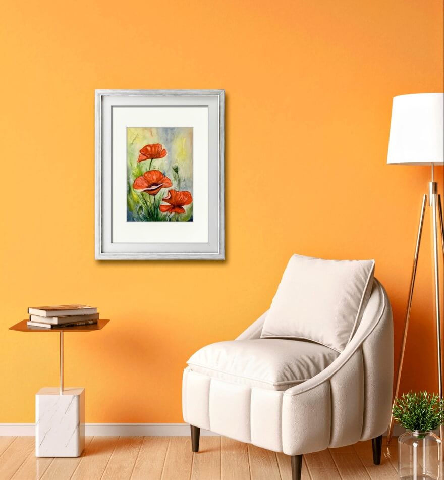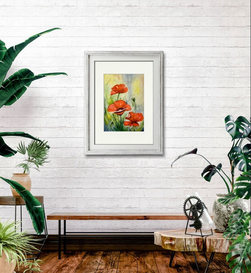 Admirati frumusetea macilor rosii in acest tablou handmade, pictat manual in acuarela. Perfect pentru a decora orice spatiu si ideal ca si cadou personalizat.