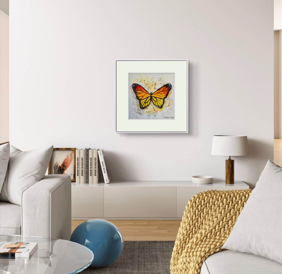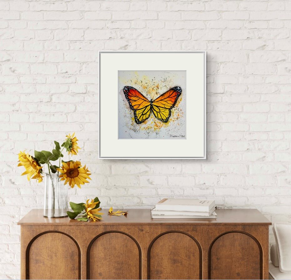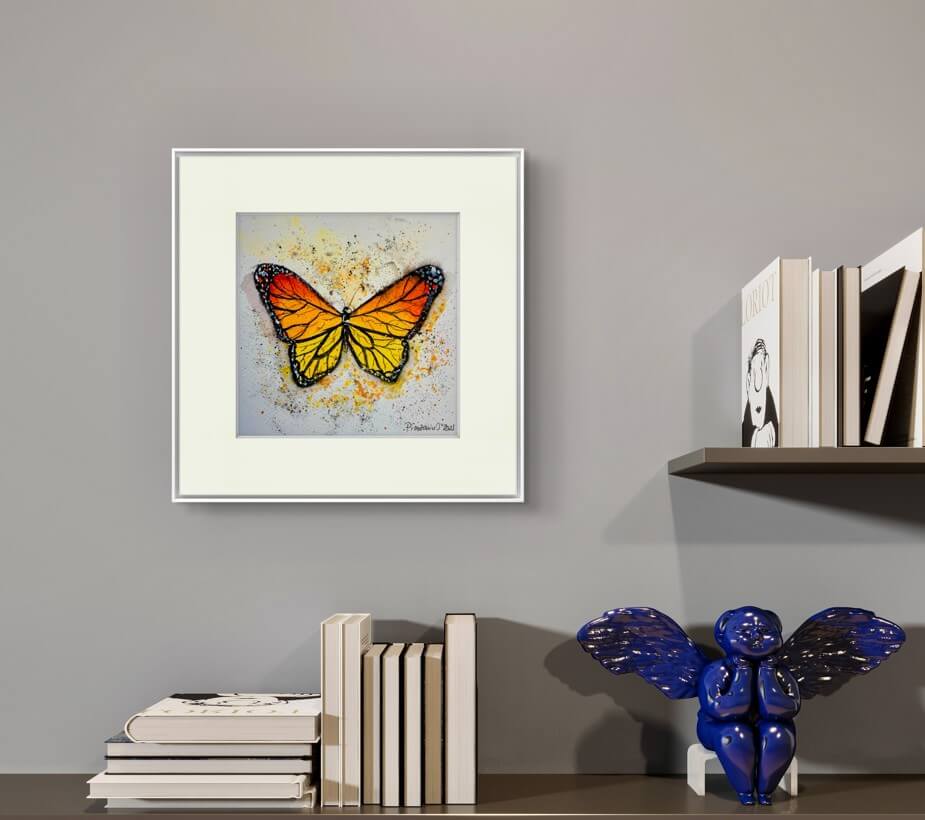 Aceasta opera este mai mult decat un simplu tablou – este o declaratie de stil si rafinament. Dimensiunea de 20×20 cm il face ideal pentru a fi integrat in diverse spatii, fie ca vorbim de o casa, un birou sau o cafenea. Poate fi un cadou minunat pentru cei dragi, pasionati de arta sau de frumusetea fluturilor.