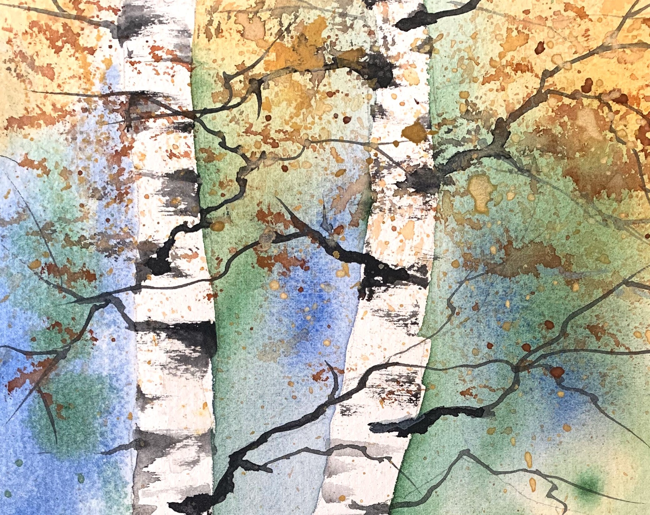 Tablou Toamna cu mesteceni, pictat manual, 28x20cm