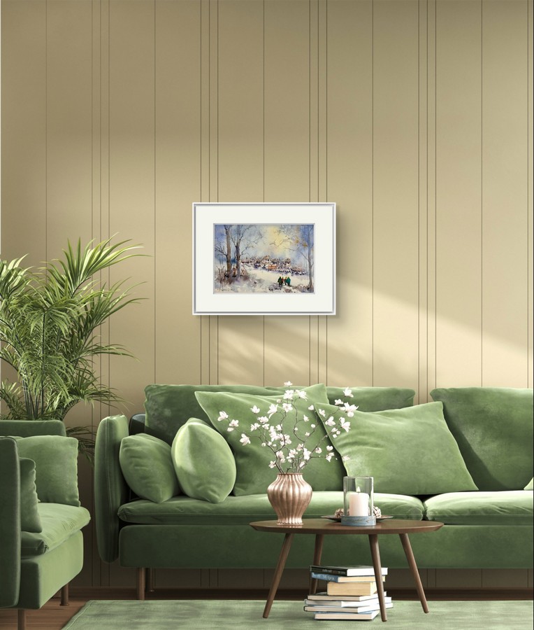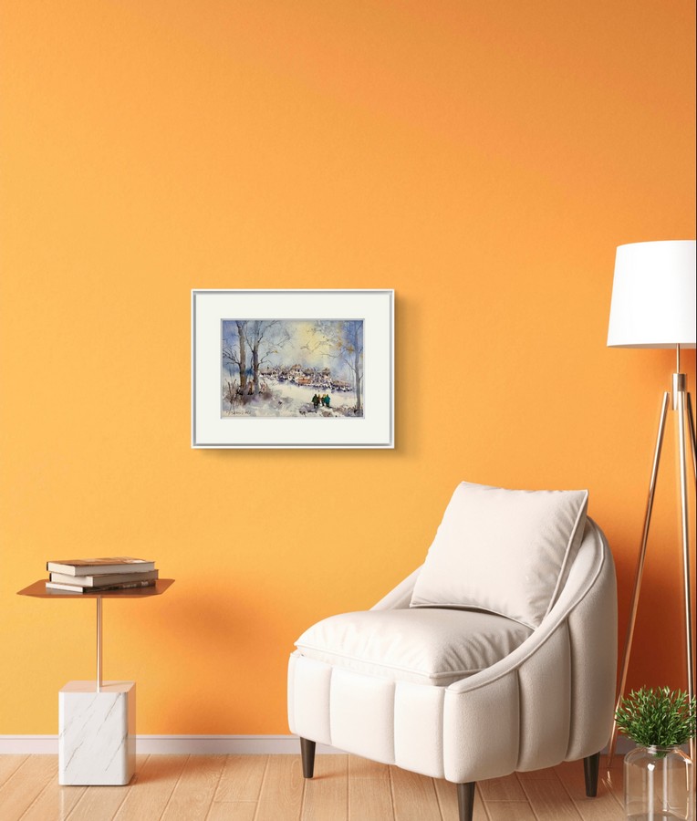 Compozitia este echilibrata si armonioasa, invitand privitorul sa se lase captivat de atmosfera linistita a peisajului. „Zori de Iarna” este mai mult decat o simpla decoratiune de perete. Este o piesa de arta ce aduce calmul si frumusetea naturii in caminul tau, creand o atmosfera relaxanta si placuta. Aceasta pictura in acuarela este ideala pentru a completa orice incapere, fie ca vorbim de living, birou sau dormitor.
