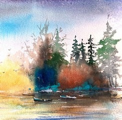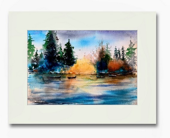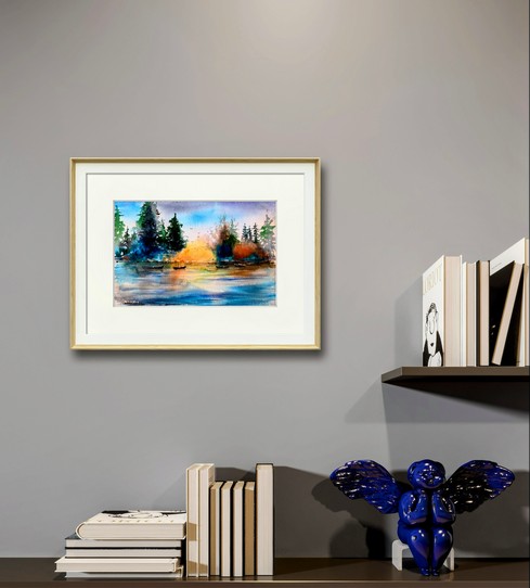 Tablou Liniste - tablou pictat manual in acuarela, 21x29cm