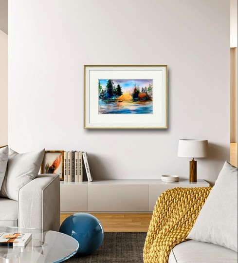 Fiecare culoare transpune lumina care danseaza pe suprafata apei si aduce in prim plan reflexiile jucause. Aceasta pictura aduce o nota de mister si eleganta in decorul casei voastre, aducand atmosfera lina si stralucitoare a apei in fiecare colt.